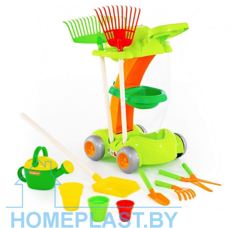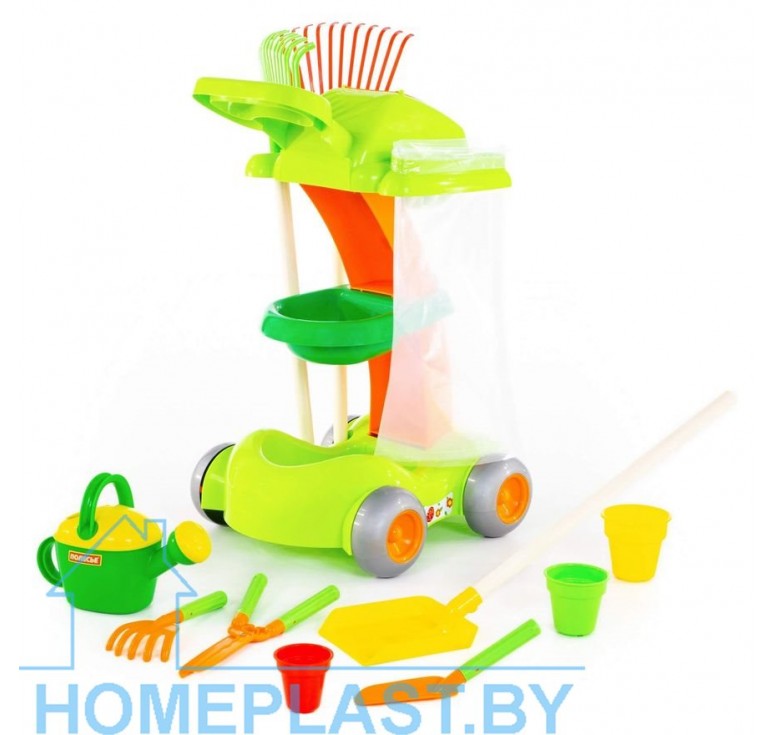 Дети всегда старались в своих играх подражать взрослым. Вы часто выезжаете с ребёнком на дачу? Тогда Вашему малышу точно придётся по душе игрушечный набор садовника от компании «Полесье». Пусть ребёнок в игровой форме изучает основы ухода за растениями и приучается к труду с удовольствием. Набор выполнен в виде тележки, которую легко перемещать. В игрушечный садовый набор входят: