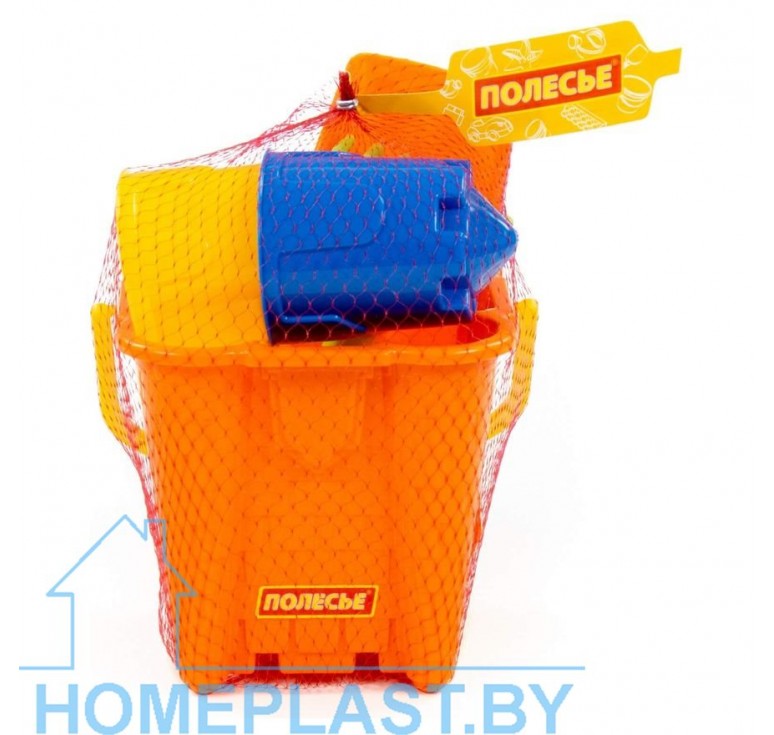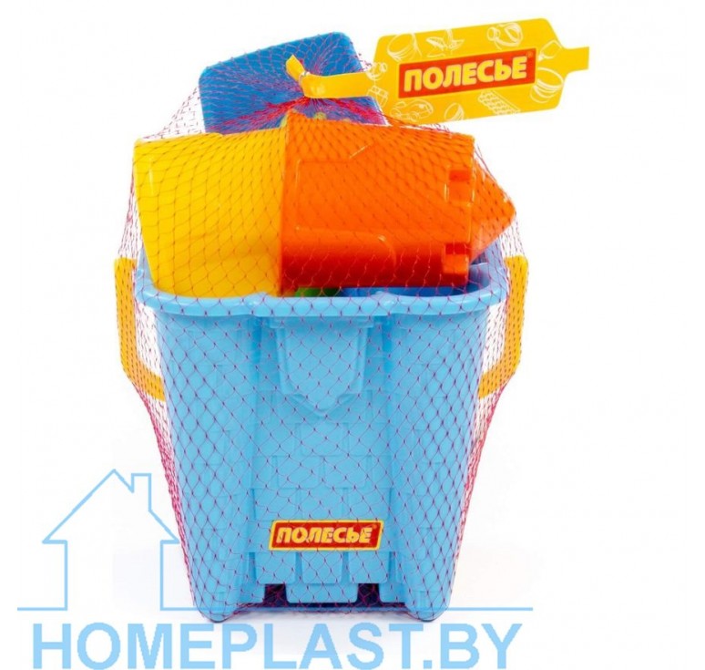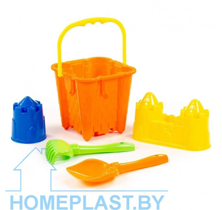 Состав набора:-Ведро-замок большое №2,- лопатка №5, -грабельки №5,- формочки (замок башня + замок стена с двумя башнями).