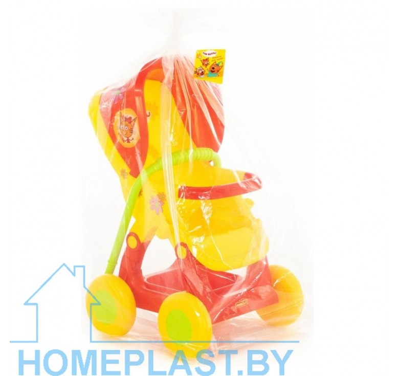 Прогулочная коляска для пупсов и кукол серии «Три кота» имеет стильный дизайн и является мини-копией оригинальной коляски. Конструкция надёжная, ведь она выполнена из качественного пластика. Под люлькой находится корзина для вещей, а сверху предусмотрен защитный козырёк. Модель украшена наклейками с изображением героев из мультфильма про весёлых котят и выполнена в жизнерадостных цветах. Коляска имеет функцию каталки, что позволяет малышке усовершенствовать навыки ходьбы.