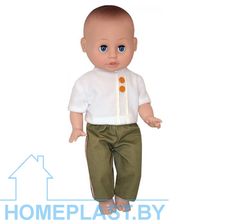 Малыш ПВХ Максим состоит из головы и рук, изготовленных из пластиката ПВХ. Туловище и ноги изготовлены из полиэтилена. Глаза вставные не закрывающиеся или закрывающиеся. Одежда съемная. Парик прошитый из искусственного волоса или рельефный. На затылочной части головы прошитой куклы допускается технологическое отверстие диаметром не более 6 мм для выхода воздуха. В одежде куклы возможно применение других материалов, не ухудшающих её качество. Конструкцией куклы предусмотрено, что она должна сидеть на горизонтальной плоскости.