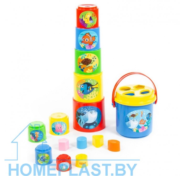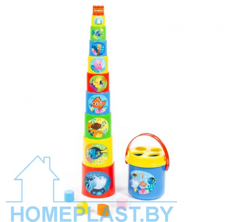 Занимательная пирамидка Disney/Pixar «В поисках Немо» от компании «Полесье» — это логическая игрушка для малышей, которую всегда можно взять с собой. Разные по размеру и цвету ведёрки собираются по принципу «матрёшки» и наоборот — можно строить пирамидки. На каждом ведёрке (11) изображены герои мультфильма Disney/Pixar «В поисках Немо». В набор входит большое ведёрко с крышечкой, на которой четыре отверстия-пазла. Для каждого отверстия нужно подобрать фигурки разных форм. Играть занимательной пирамидкой интересно дома и на свежем воздухе. Игрушку можно брать в песочницу и использовать ведёрки в качестве формочек для создания башен из песка. Игрушка развивает логическое и пространственное мышление, координацию движений, воображение, память и мелкую моторику рук ребёнка.