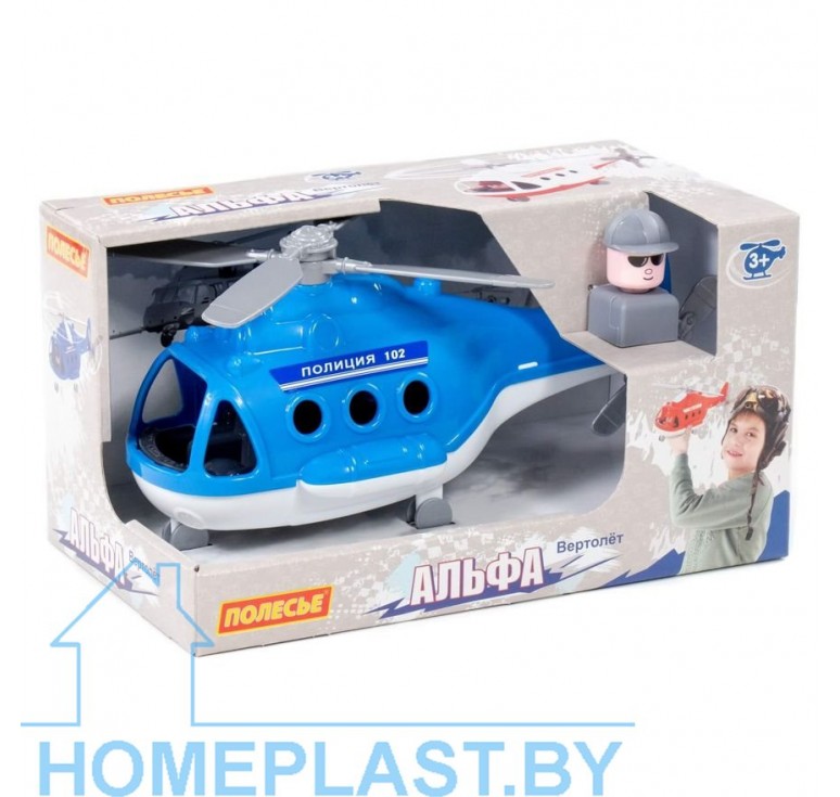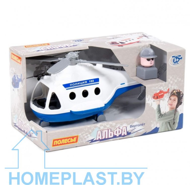 Вертолёт — полиция «Альфа» от фабрики «Полесье» — это игрушка, которая имеет округлую форму и стильный дизайн. Лопасти вертолёта подвижны, это позволяет сделать игру более реалистичной и захватывающей. Кабина имеет окна и оснащена сиденьями, одно из которых занимает фигурка пилота. Также конструкция вертолёта предполагает наличие шасси с колёсиками. Они позволяют передвигать игрушку по плоской поверхности и способствуют созданию различных игровых сценариев. Вертолёт выполнен в сине-белом цвете. Поставляется в яркой полиграфии.