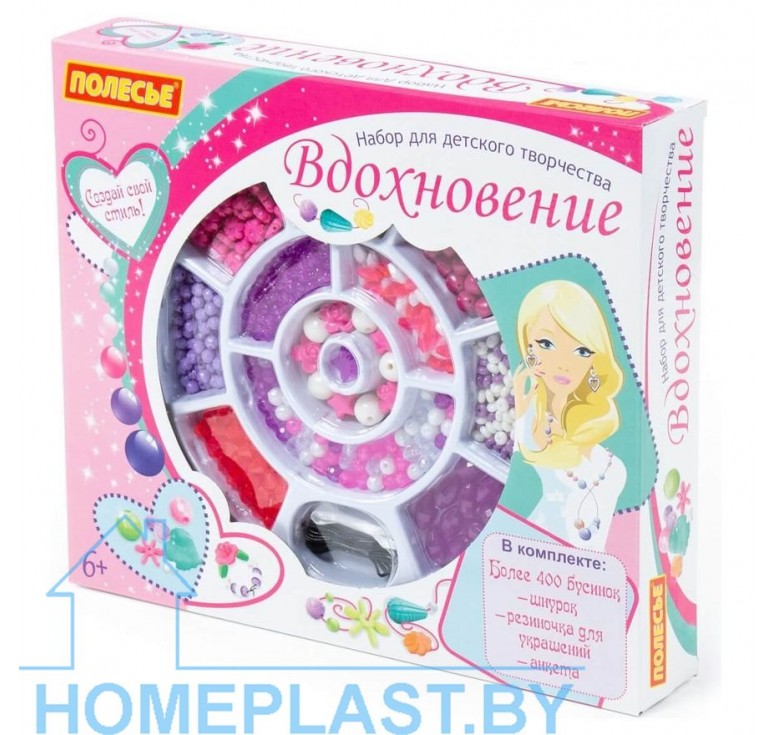 Набор для детского творчества «Вдохновение» (423 элемента) (в коробке) от фабрики «Полесье» позволит ребёнку почувствовать себя настоящим дизайнером бижутерии, а также научит создавать удивительные аксессуары! В комплект входит более 400 бусинок, шнурок и резиночка для украшений. Все бусины имеют разную форму и цвет, выполнены из качественного пластика. Разнообразит игру и сделает её ещё интереснее анкета модницы, которая также входит в комплект. Набор способствует разностороннему развитию ребёнка.