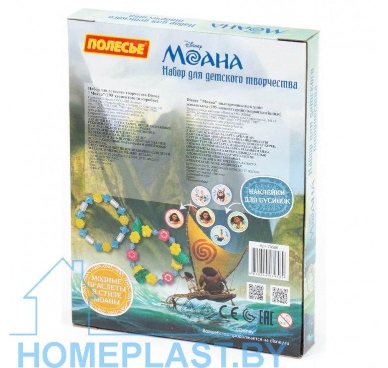 Модные браслеты и бусы для маленькой принцессы девочка может создавать самостоятельно. Достаточно лишь выбрать подходящий набор для детского творчества от компании «Полесье». Набор для креатива Disney «Моана» позволит девочке почувствовать себя настоящим дизайнером аксессуаров. В комплект входят: свыше 150 бусин, наклейки на элементы-медальоны (с изображением героев диснеевского мультфильма «Моана»), шнурок и резинка для украшений. Все бусины отличаются по цвету, форме и размеру. Выполнены из качественного пластика. С таким набором ребёнок сможет творить, развивать фантазию и художественный вкус, своими руками создавать бижутерию и играть с ней. Набор упакован в красочную коробку с органайзером и станет ярким подарком для девочки.