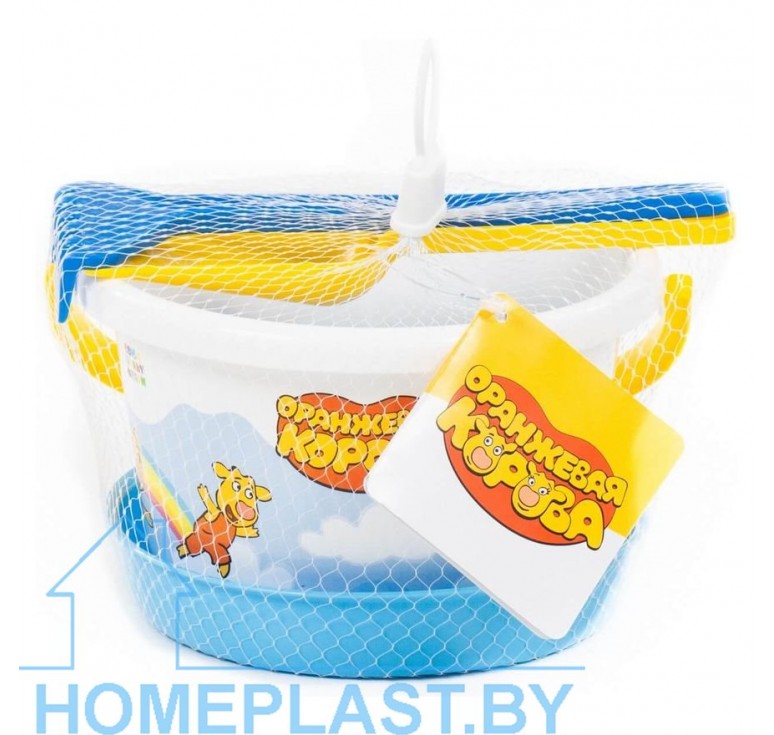Играть в песочнице интереснее с летним набором от компании «Полесье»! Благодаря современной технологии IML — вплавляемой этикетке, — рисунок на ведёрке надолго остаётся ярким и не стирается. Это позволяет использовать игрушку с изображением персонажей мультсериала «Оранжевая корова» длительное время. Набор производится в двух цветовых вариантах и упакован в сеточку.