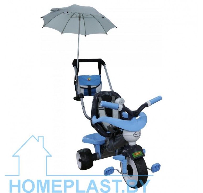 Данная модель трёхколёсного велосипеда серии «Амиго» оснащена ручкой управления, которая регулируется по высоте: нужно нажать на кнопку и зафиксировать ручку. Для удобства управления на ручке имеется мягкая накладка. Эргономичное сиденье велосипеда, ремни фиксации кресла, дополнительная подставка для ножек и съёмная дуга-ограничитель способствуют комфортному и безопасному перемещению ребёнка. На руле миниатюрного транспорта установлен клаксон, при нажатии на который раздаётся сигнал. Позади велосипеда располагается корзина, а в комплекте идёт прогулочная сумка, что позволяет брать необходимые вещи малыша с собой. В жаркую или дождливую погоду пригодится зонтик, который также крепится к ручке управления. С этой моделью велосипеда прогулка на свежем воздухе превратится в увлекательное путешествие, а сам малыш научится ловкости. Езда на велосипеде также развивает координацию движений и укрепляет определённые группы мышц (особенно ног). В этой модели колёса выполнены из вспененного каучука (современного полимерного материала), за счёт чего происходит лучшее сцепление колёс.